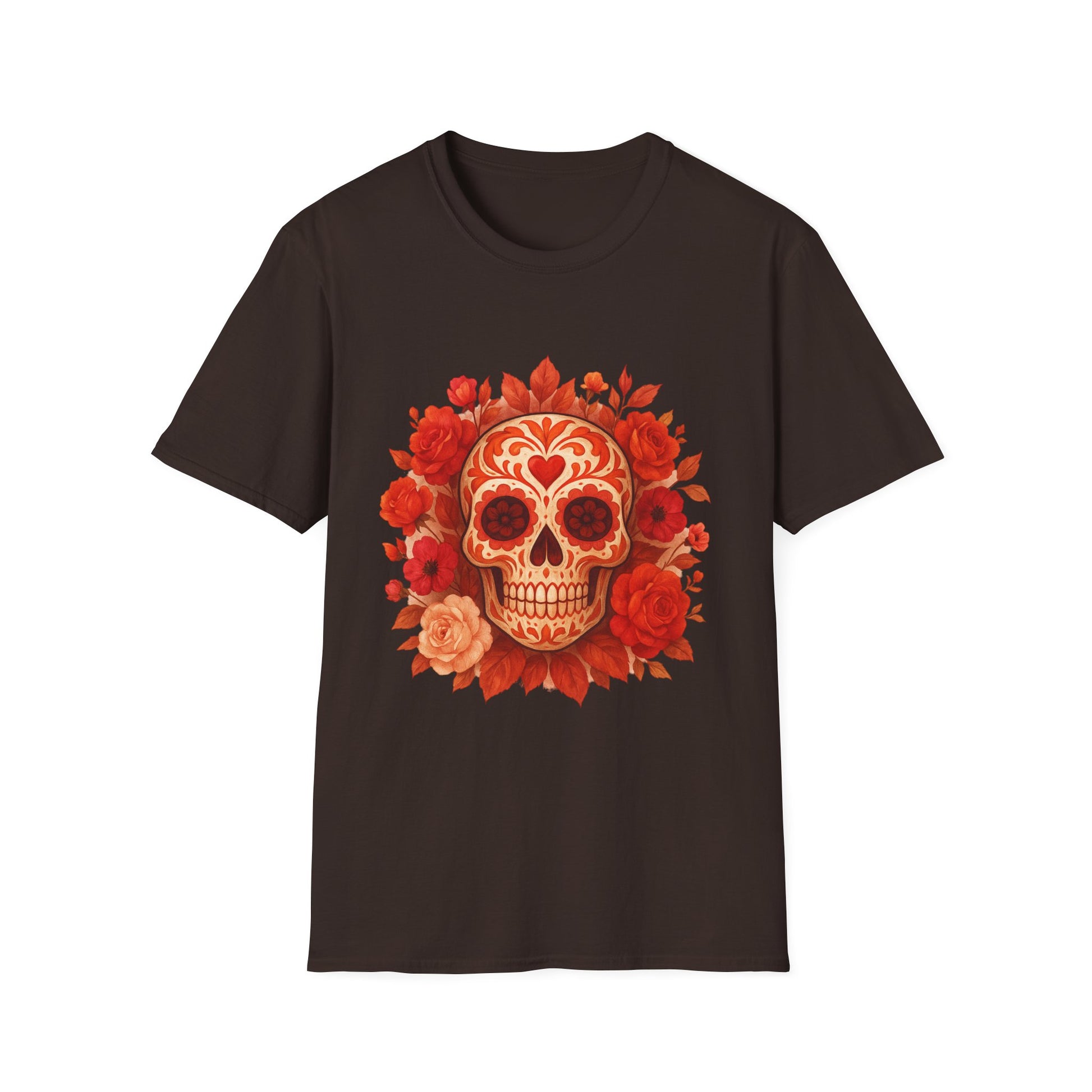 Colorful Floral Skull T-Shirt, Dia de los Muertos Tee, Casual Wear, Gifts for Her, Graphic Shirt, Boho Style Fashion
