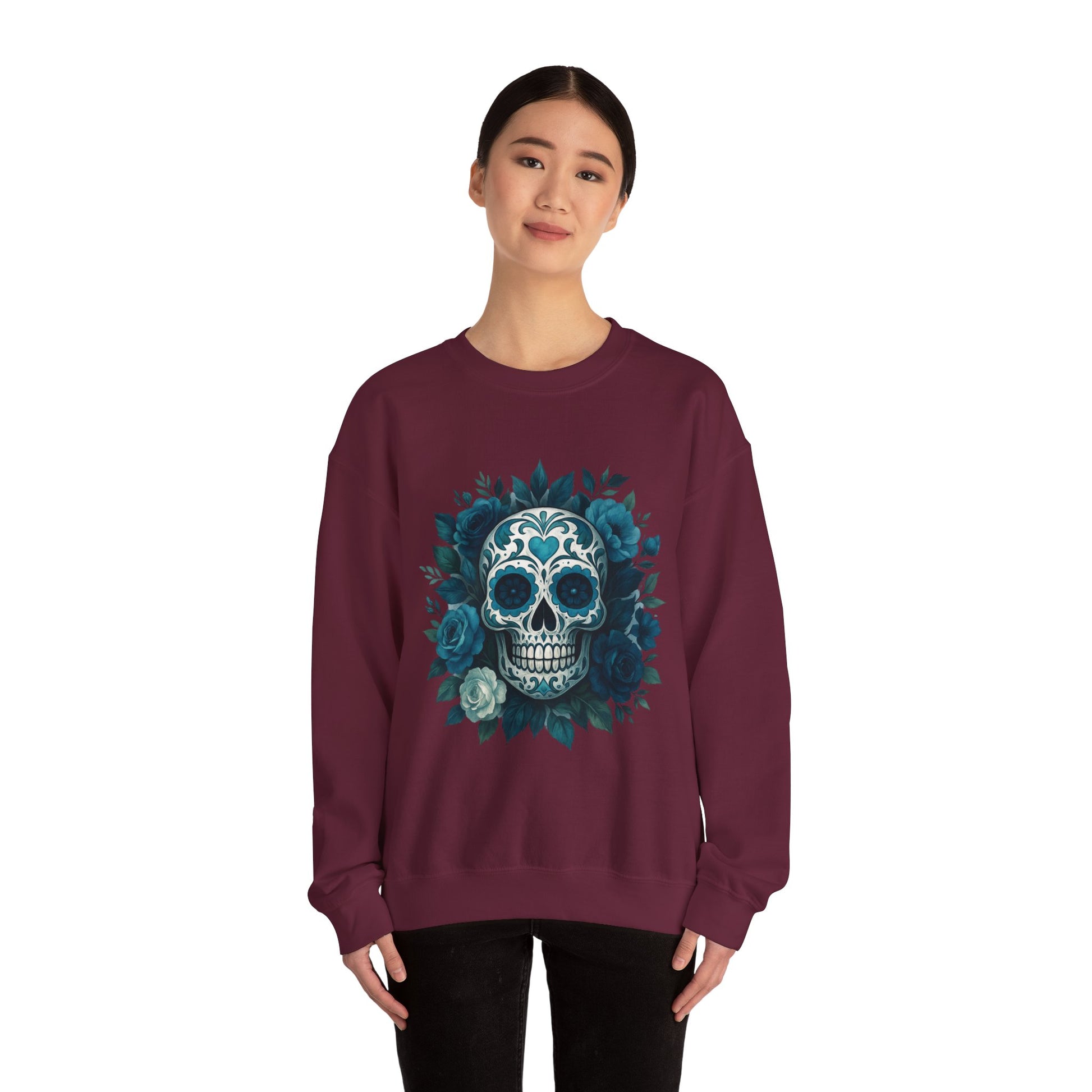 Colorful Sugar Skull Sweatshirt, Unisex Crewneck Sweatshirt for Halloween, Unique Gift for Day of the Dead, Cozy Fall Fashion, Casual Wear
